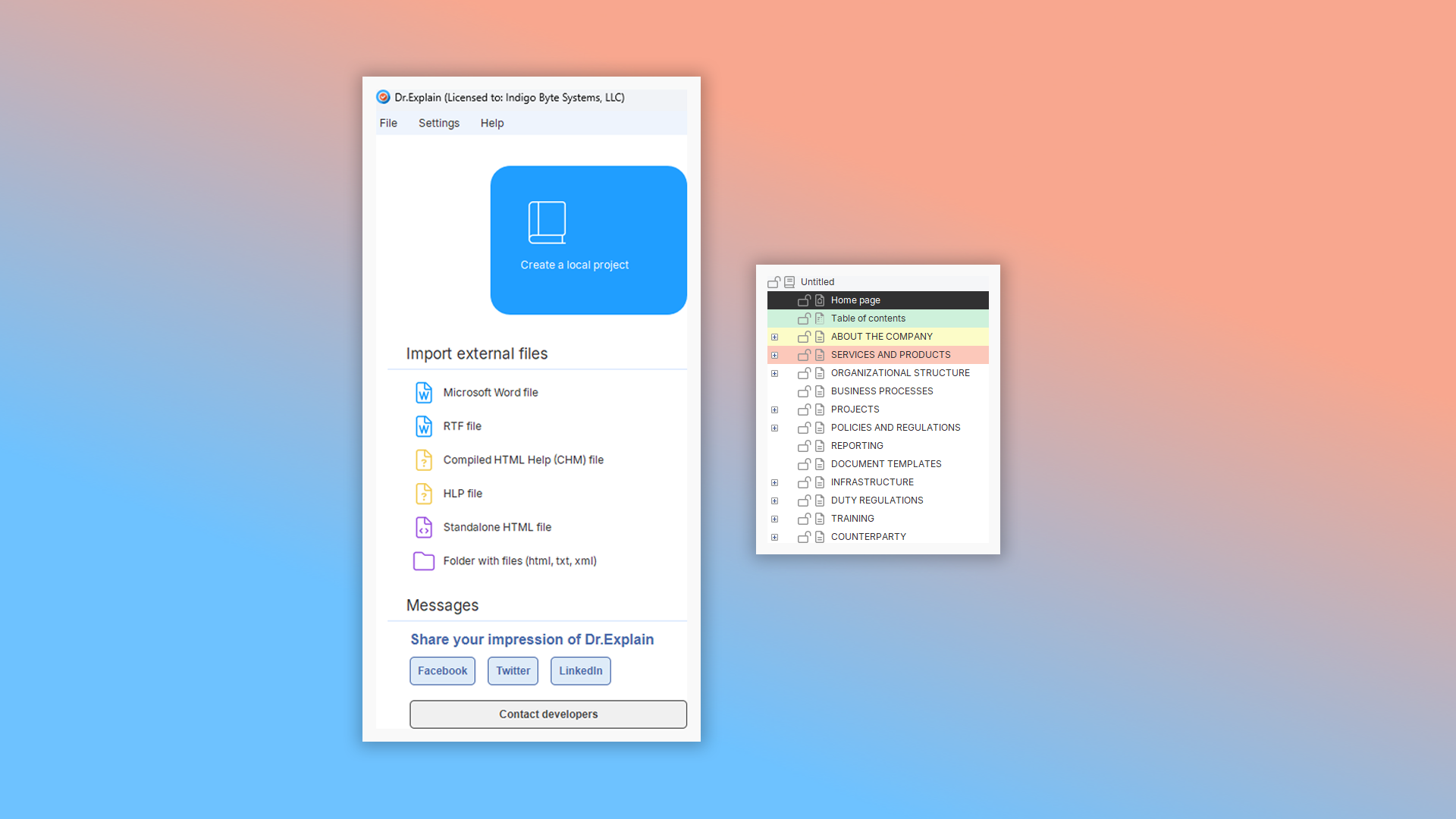 "This was the first time that we need to create a help file for any project. I did do some research and compared different CHM help file authoring tools and Dr. Explain seemed to suit my requirements and seemed very easy to use. Based on the reviews of other users, I decided to give it a try and I can say without any hesitation that it was a good decision".