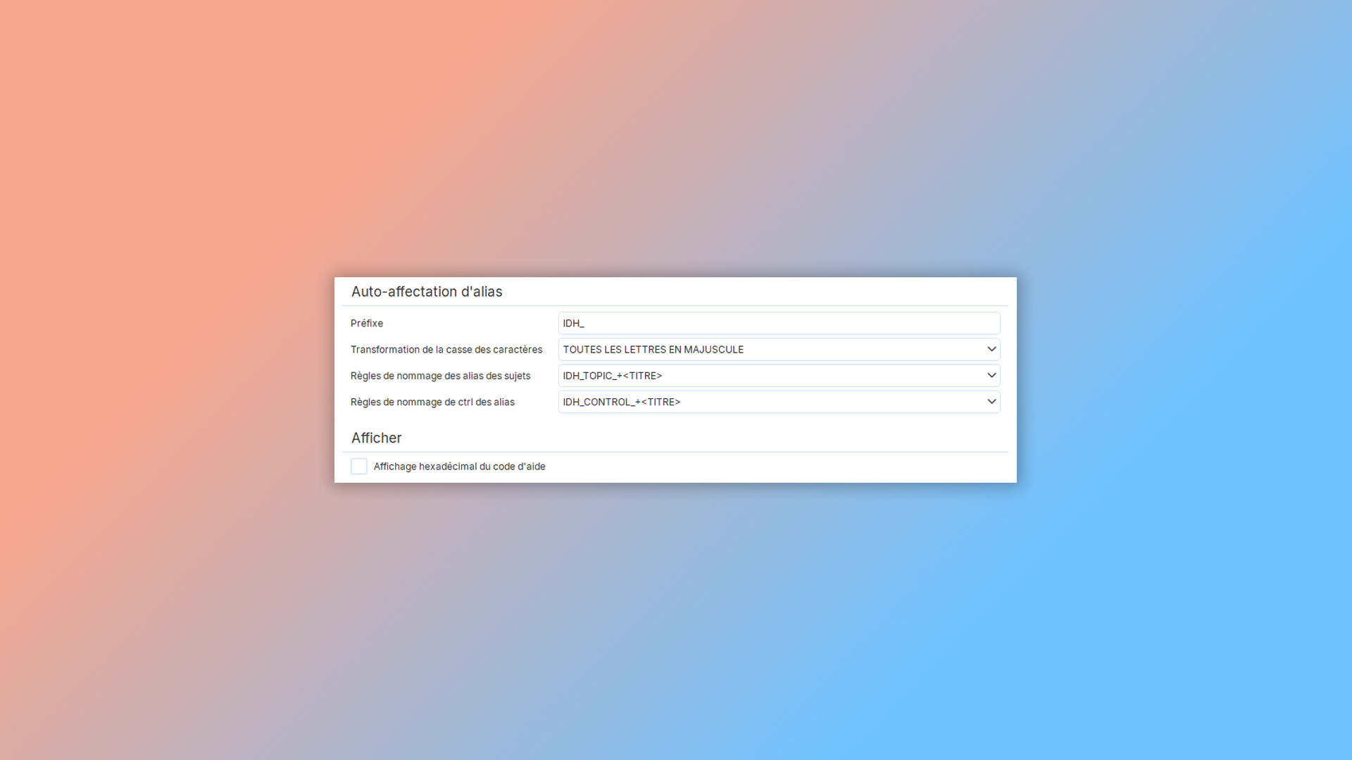 Attribution automatique d'identifiants Help ID aux sections