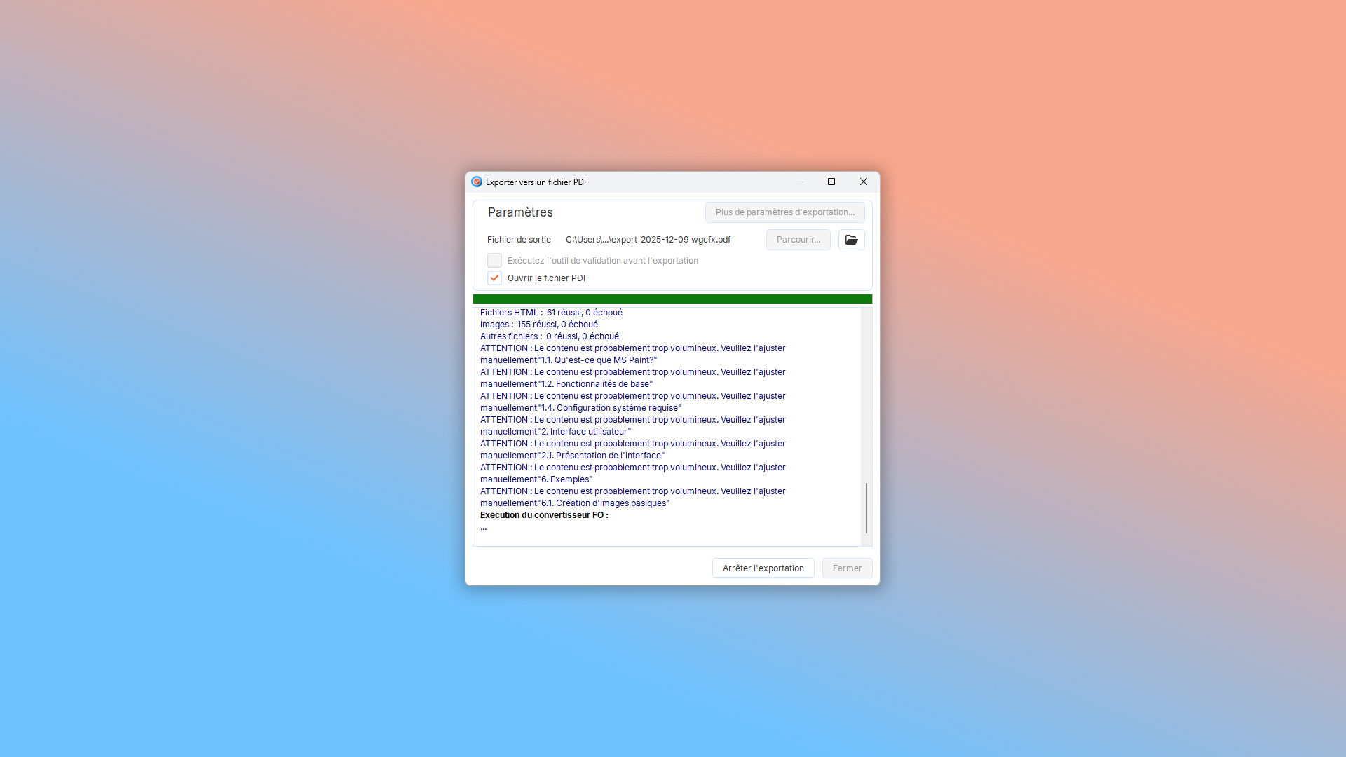 Une fois la documentation rédigée, il reste à l'exporter au format souhaité.