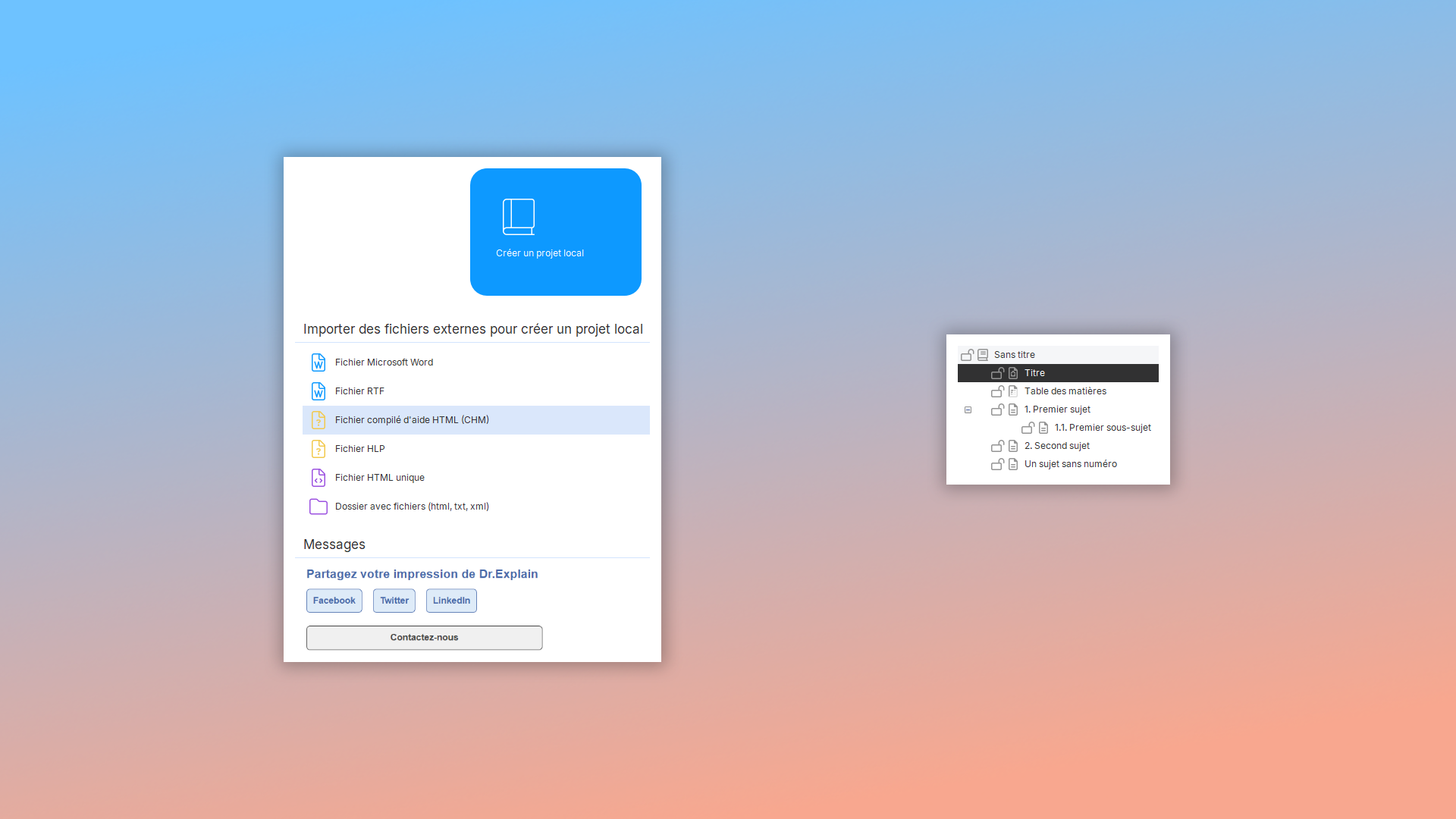 - l'export multi-format (HTML, PDF, CHM, DOCX);