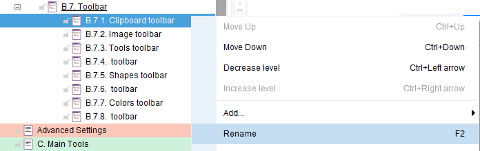 Creating or adding topics is similar to creating new documents in regular text editors. After creating a topic, you can add text and other content into it, as well as move the topic around in the topic tree.