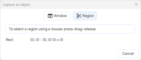 Once you start capturing a new window, the following Capture an object dialog appears: