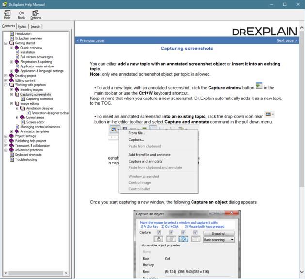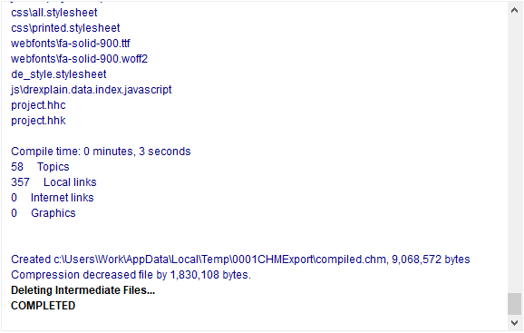 Upon completion of the publishing process, Dr.Explain will open the generated CHM file (if you didn't clear the Open CHM file checkbox):