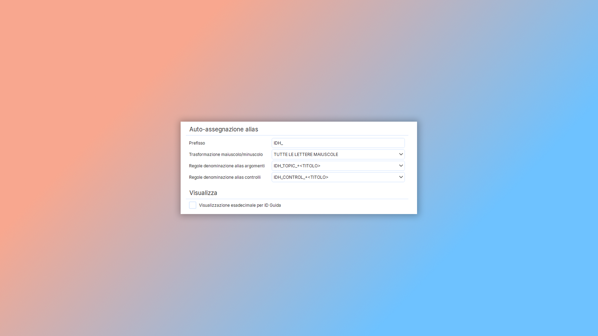 Assegnazione automatica di identificativi Help ID alle sezioni