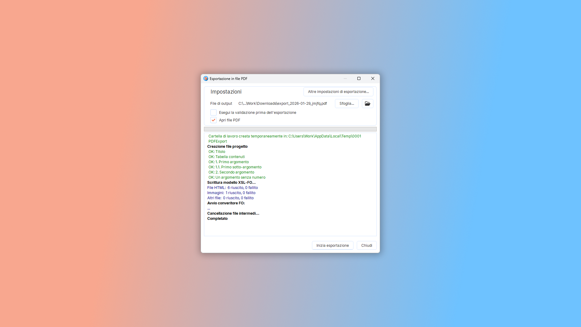 Dopo aver scritto la documentazione, non resta che esportarla nel formato desiderato.