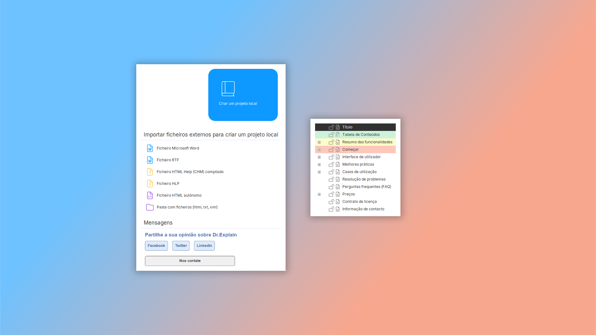 Esteja você trabalhando sozinho ou em equipe, o Dr.Explain ajuda você a criar documentação profissional de forma eficiente.