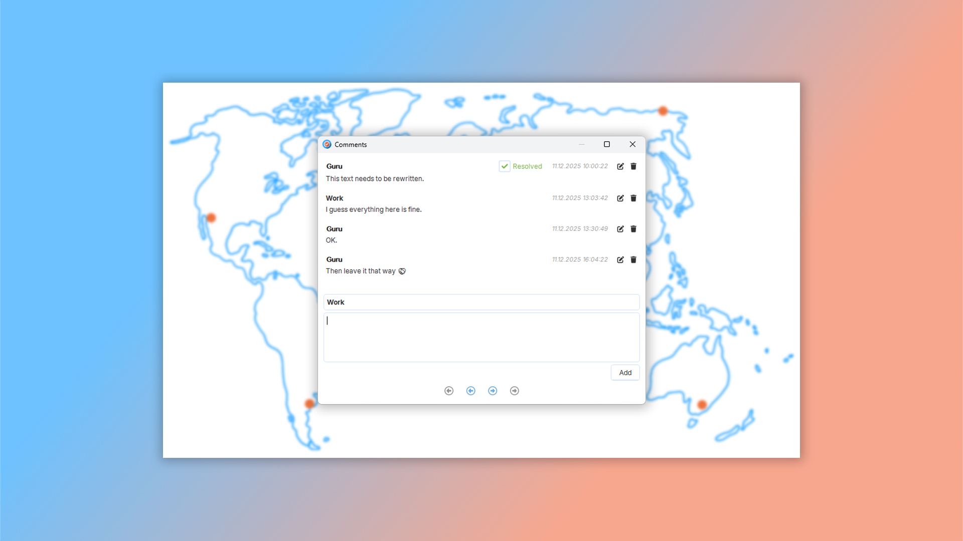 O Dr.Explain oferece ferramentas de colaboração flexíveis que podem ser adaptadas para atender às necessidades de diferentes equipes e organizações. Você pode configurar o trabalho em equipe usando o serviço freemium Tiwri.com ou em seu próprio servidor corporativo dentro da rede interna da sua empresa. Trabalhem juntos em diferentes tópicos, permitindo que os membros da equipe: